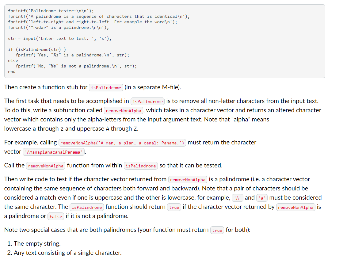 Solved Problem Statements A palindrome is a string which is | Chegg.com