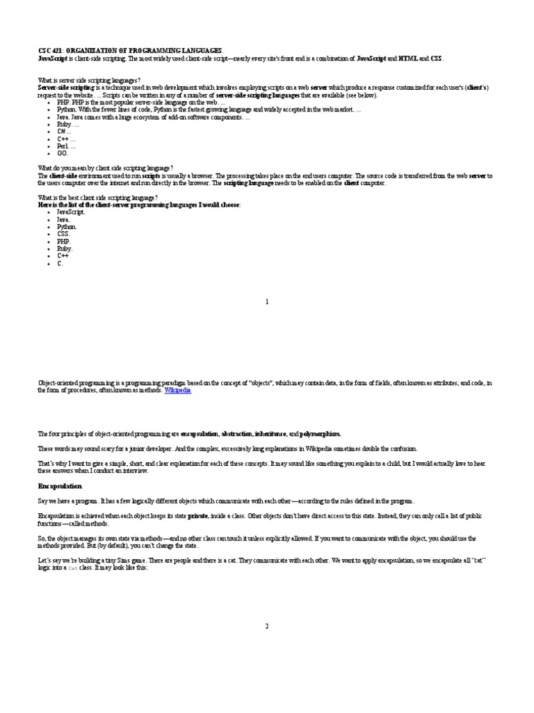 CSC 421 OOP JavaScript Is Client and OBJECT ORIENTED PROGRAMMING | PDF ...