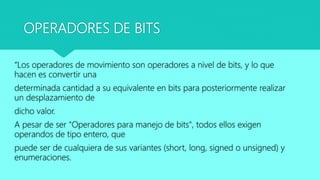 Manejo de bits -operadores de bits C++ | PPTX | Programming Languages ...