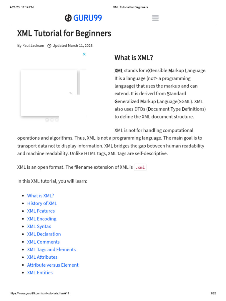 A Comprehensive XML Tutorial: Learn XML Basics and Important | Course Hero