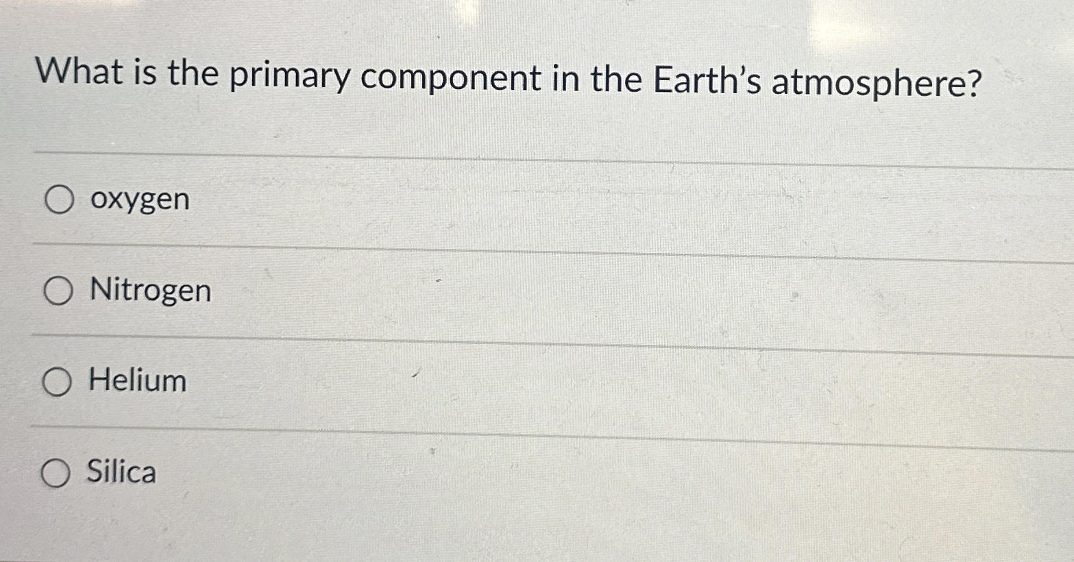 Solved What gas is the primary component of the Earth's | Chegg.com