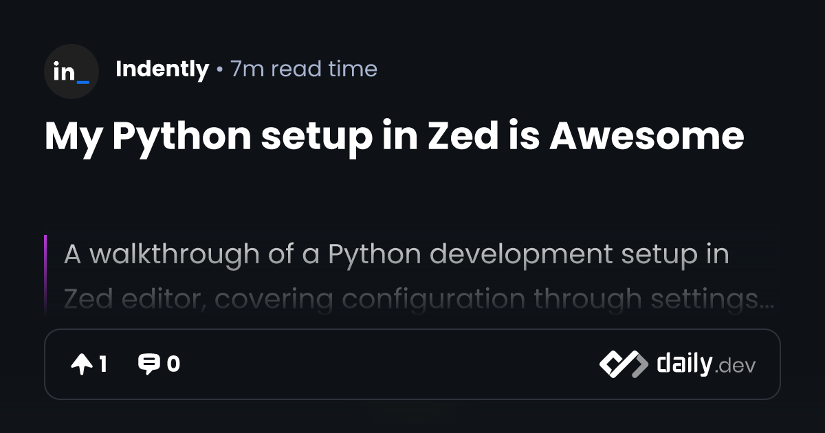 My Python setup in Zed is Awesome | daily.dev