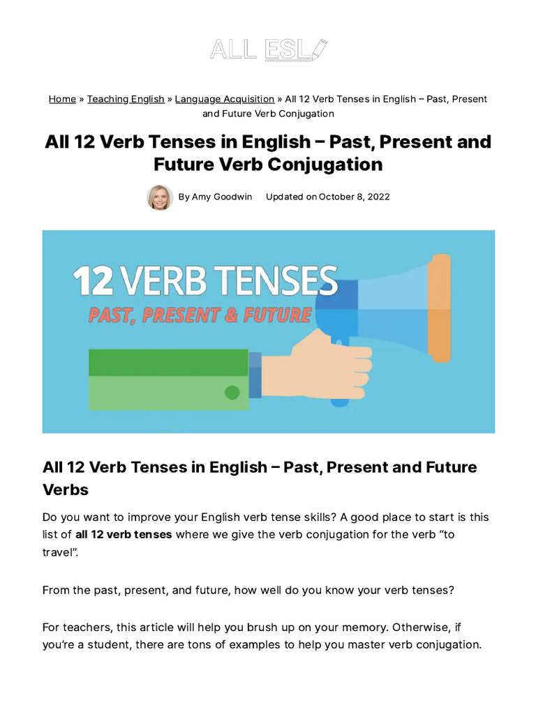 Verb Tenses in English: A Complete Guide - English Teaching Toolkit