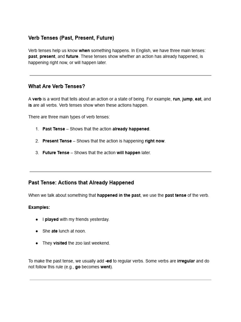 Verb Tenses (Past, Present, Future) | PDF | Grammatical Tense | Verb