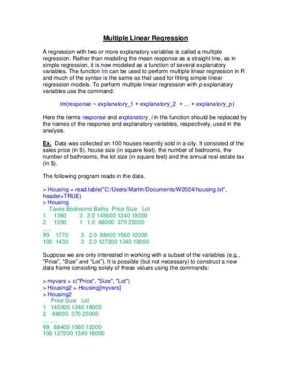 Multiple Linear Regression- Using R - Mathematics - Studocu