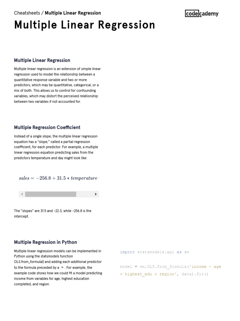 Multiple Linear Regression - Multiple Linear Regression Cheatsheet ...