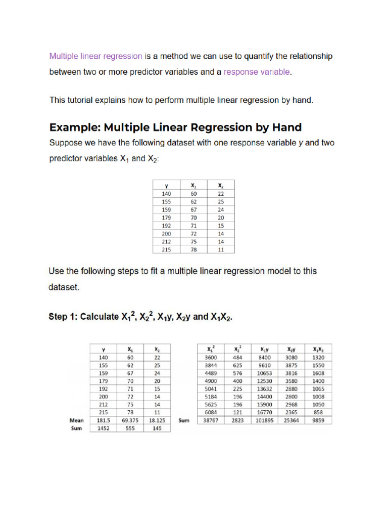 Multiple Linear Regression by Hand (Step-by-Step) - Statology - 4pages ...