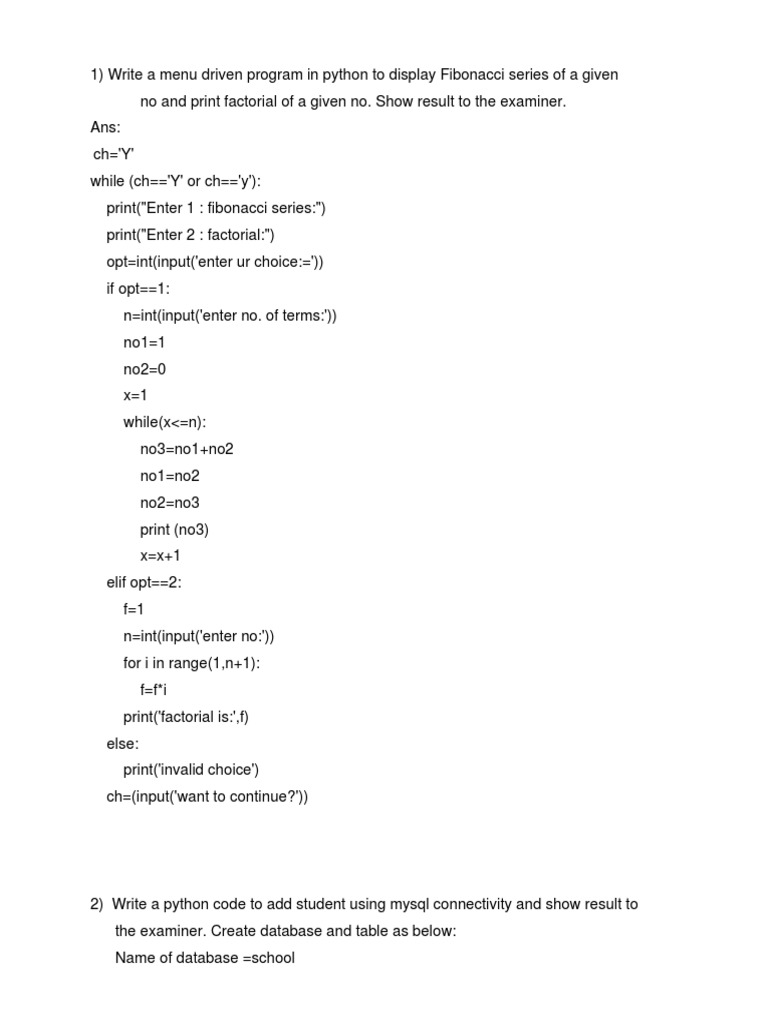 Python and SQL Practicals for Class XII | PDF | Computer Program ...
