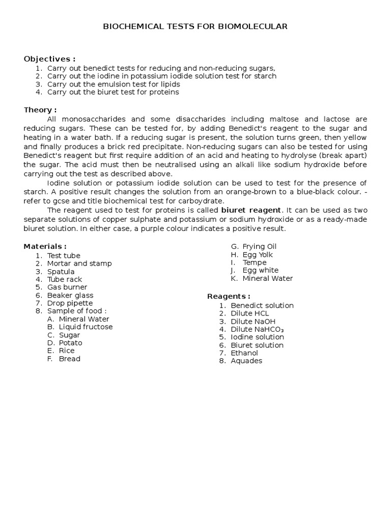 Biochemical Tests For Biomolecular | PDF | Carbohydrates | Molecules