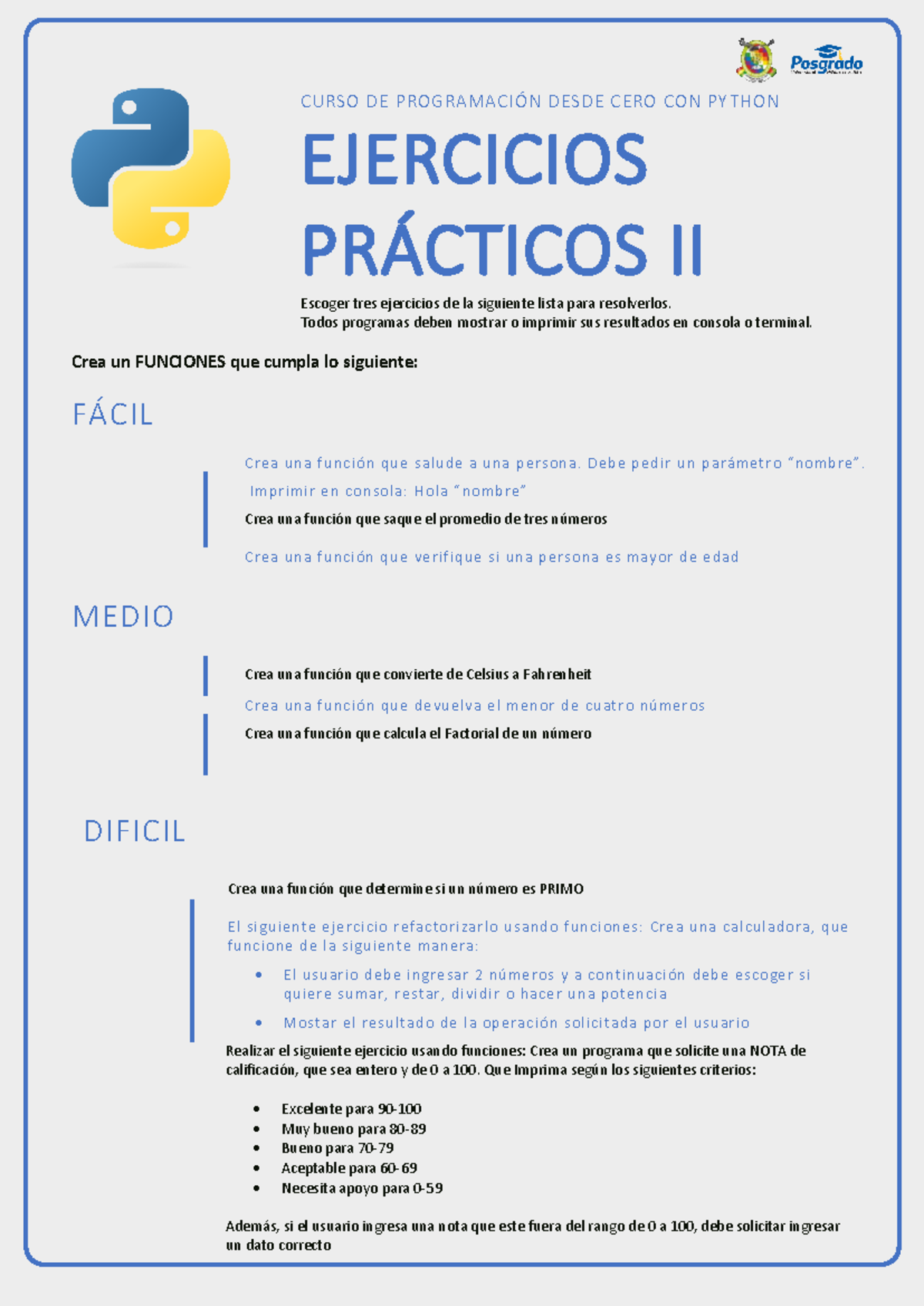 Ejercicios de Python: Práctica y Ejercicios (PY101) - Studocu