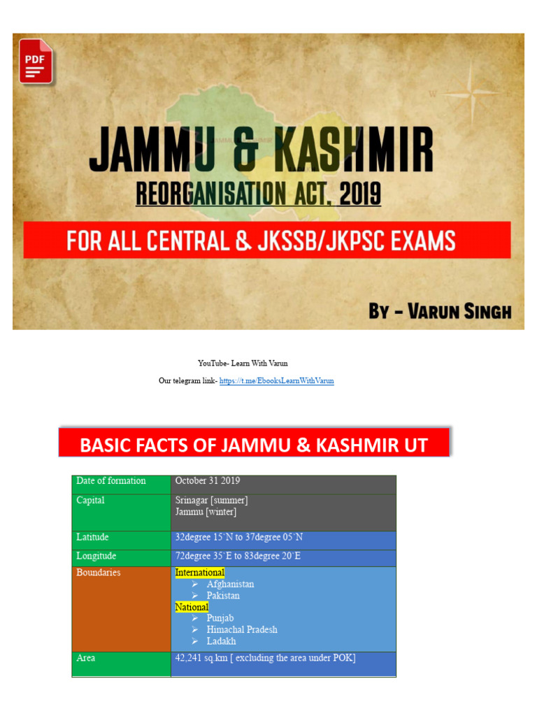 J&K Reorganisation Act 2019 By Varun singh | PDF | Government ...