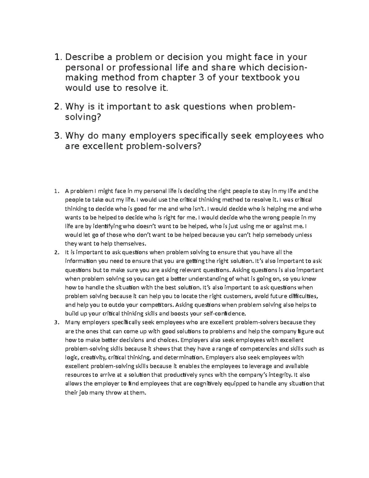 Week 2 discussion HU2000 - 1. Describe a problem or decision you might ...