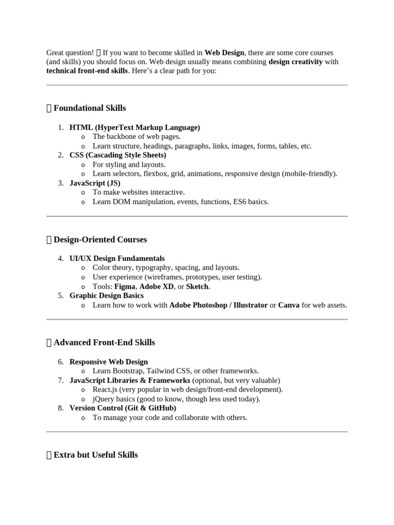 Roadmap for Web Development: HTML, CSS, JS & React Mastery - Studocu