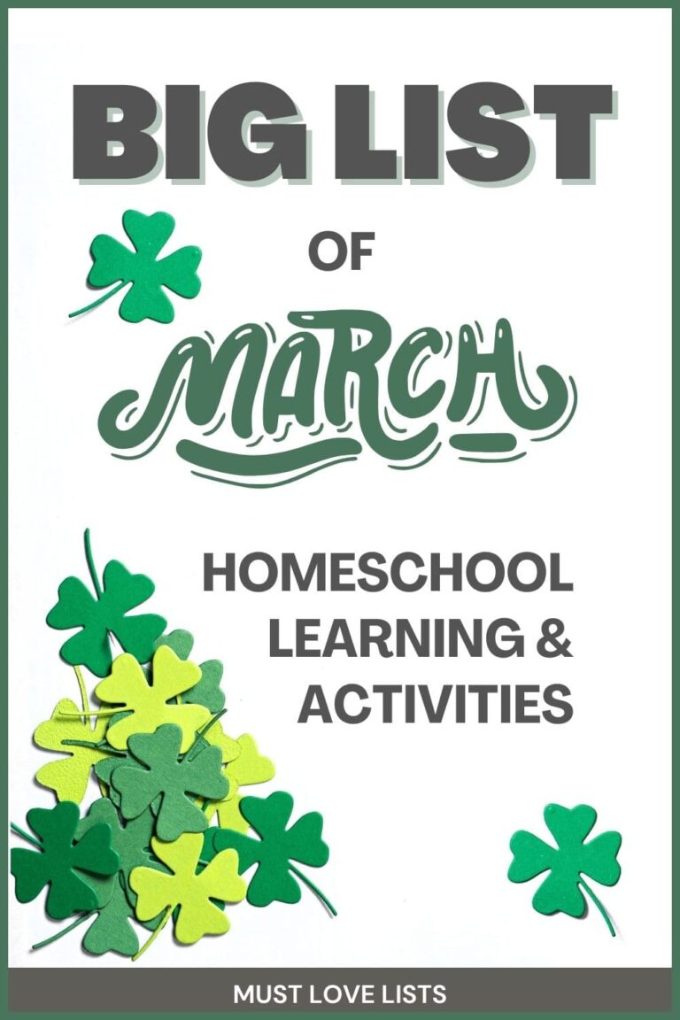 Big List of March Homeschool Learning Ideas and Activities - Must Love ...
