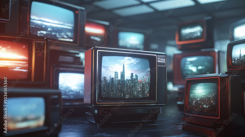 Ilustración de Stock Lots of TVs with special effects that let you put ...