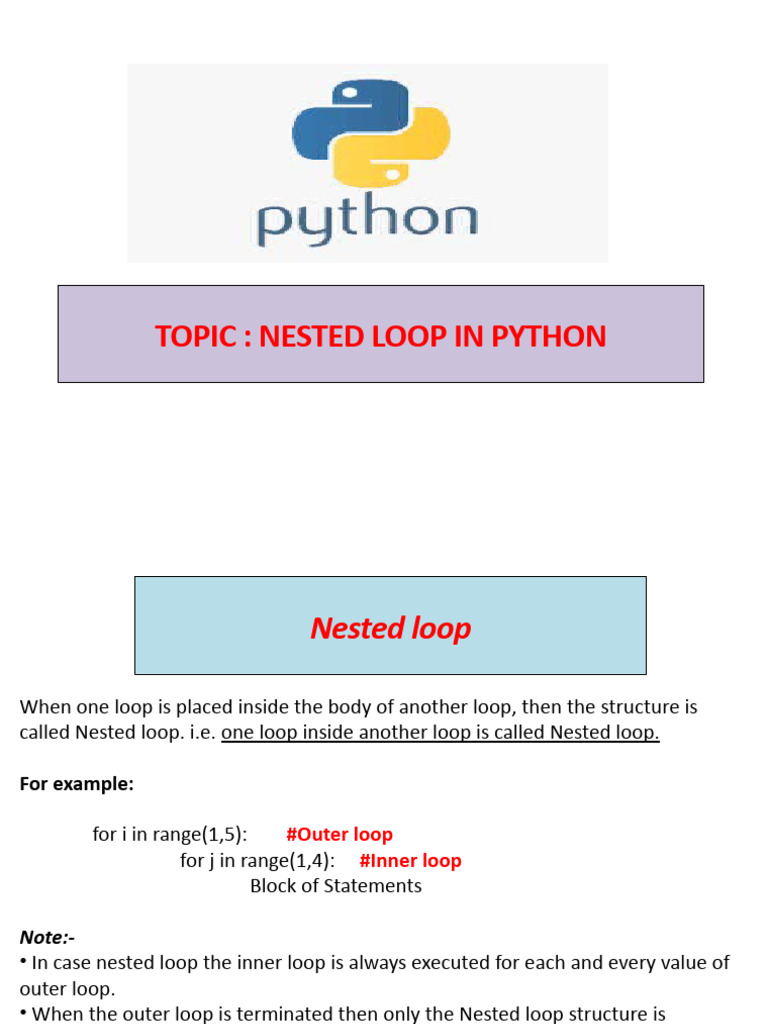 Based on this image's title: “Xi-Cs-Nested Loop in Python | PDF | Control Flow | Computer Programming”