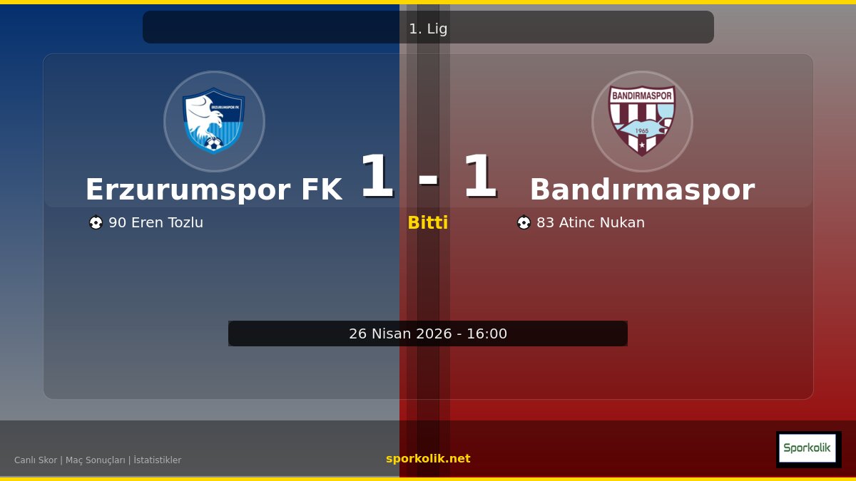 Erzurumspor FK vs Bandırmaspor: Skor, Özet ve Maç Verileri - Sporkolik.net