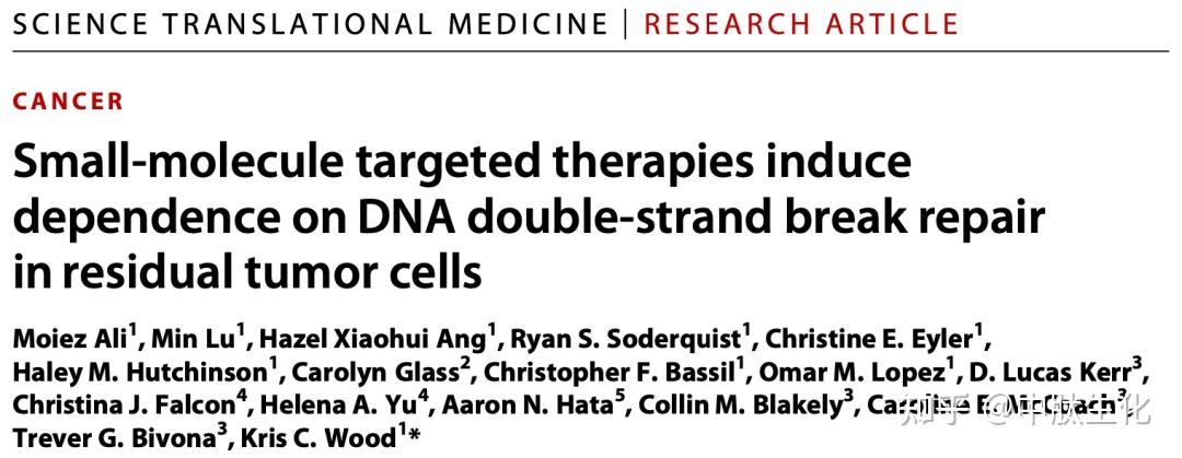 《科学·转化医学》:清除靶向治疗残余耐药癌细胞的方法找到了 - 知乎