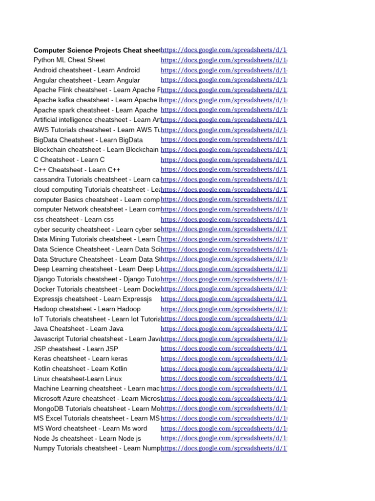 Cheat sheet | Learn computer science, Data science learning, Machine ...