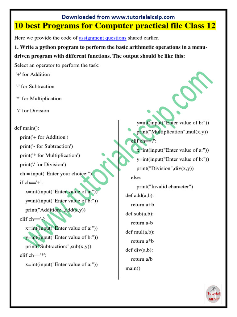 CBSE Class 12 Computer practical Python Programs and MYSQL | DOCX