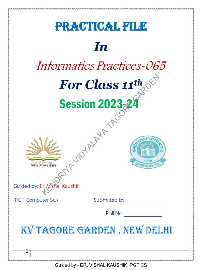 CBSE Class 12 Informatics Practices Practical File - Anjeev Singh Academy