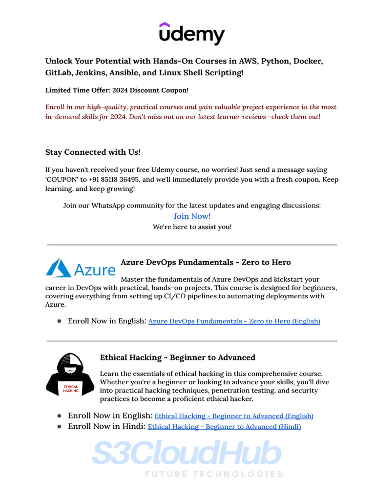 Unlock Your Potential With Hands On Courses in AWS, Python, Docker | PDF