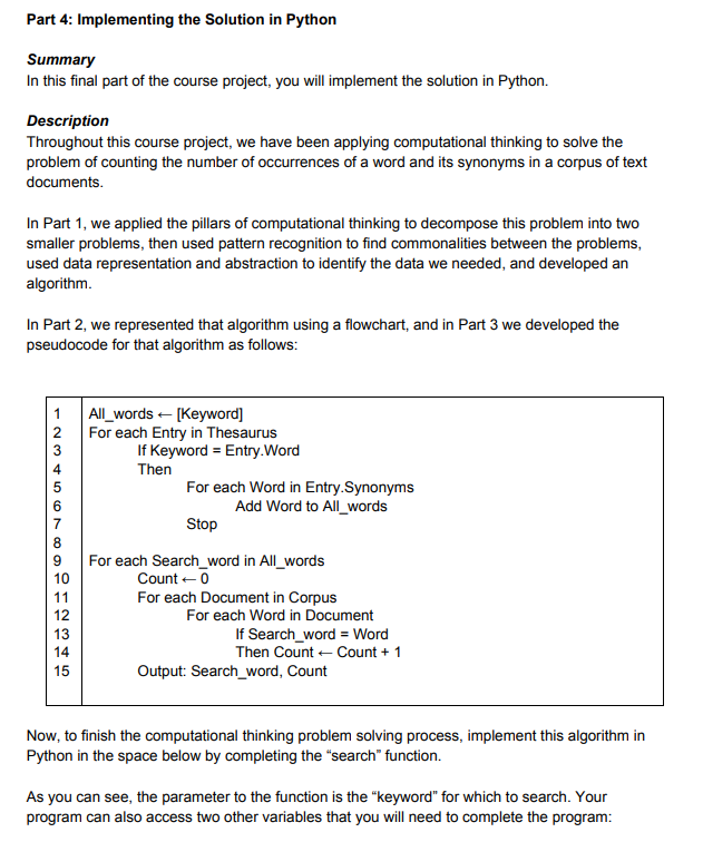 Solved Part 4: Implementing the Solution in Python Summary | Chegg.com