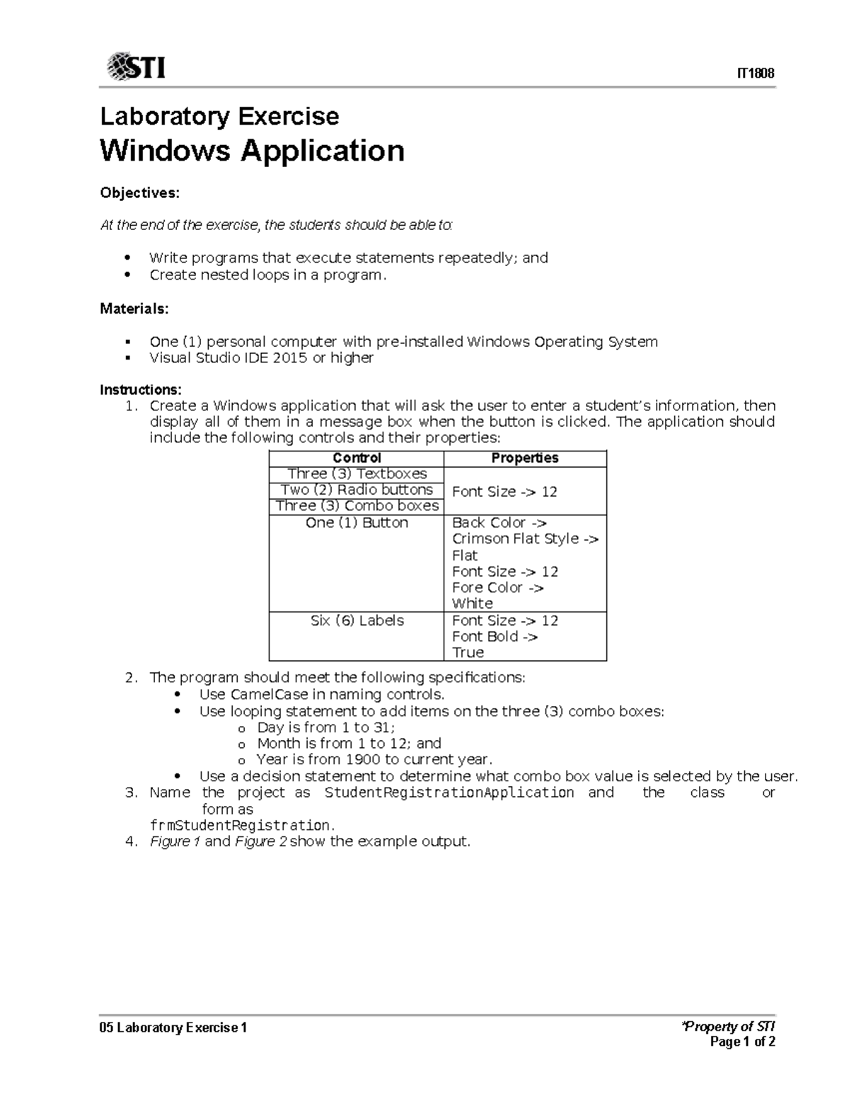 IT1808 Lab Exercise: Creating a Windows Application - Studocu