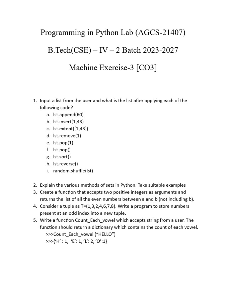 Python LAB Exercises: Sample Output | Download Free PDF | Sequence ...