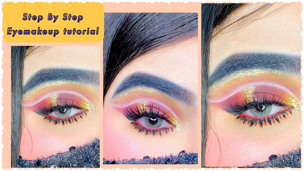 Step by step full cut crease eyemakeup tutorial ||colourful eyemakeup ...