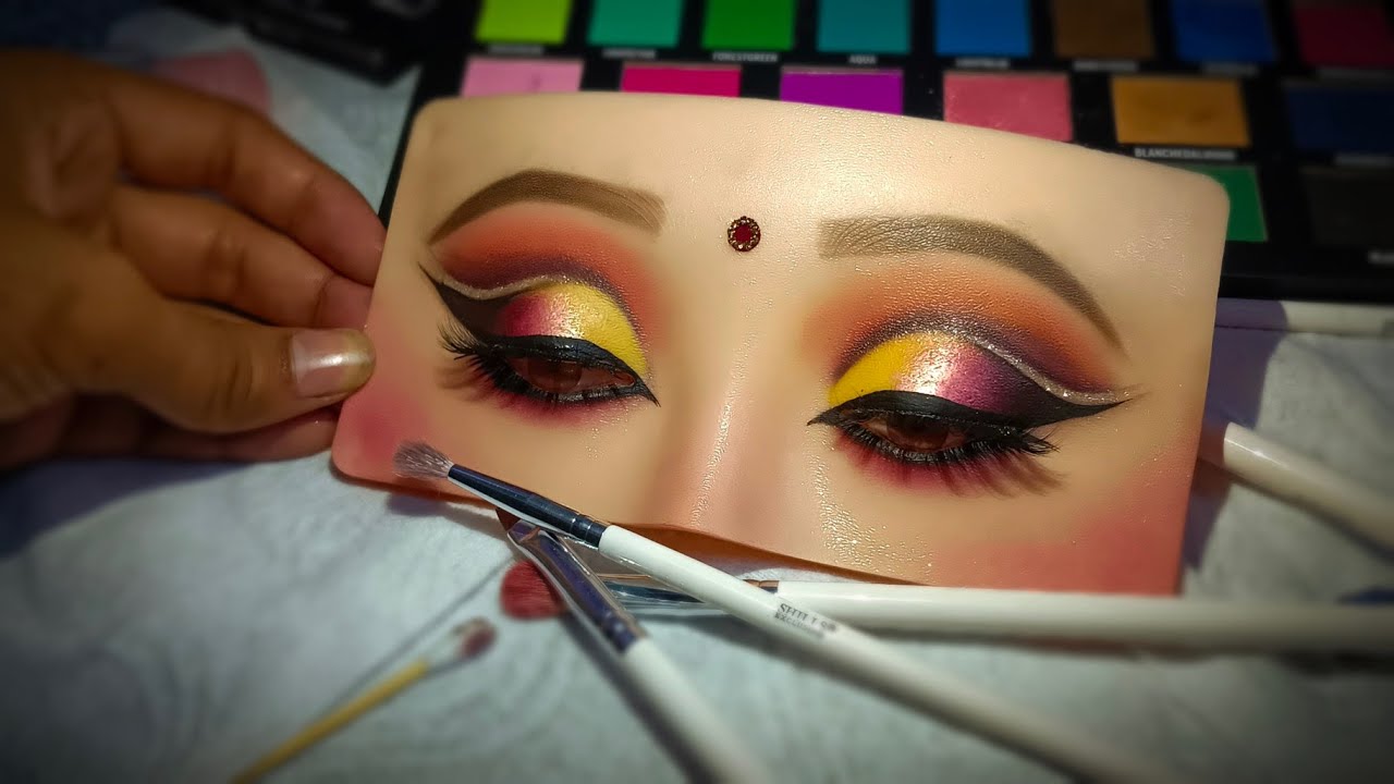 Eye makeup on dummy | Half cut crease eye makeup | How to practice eye ...