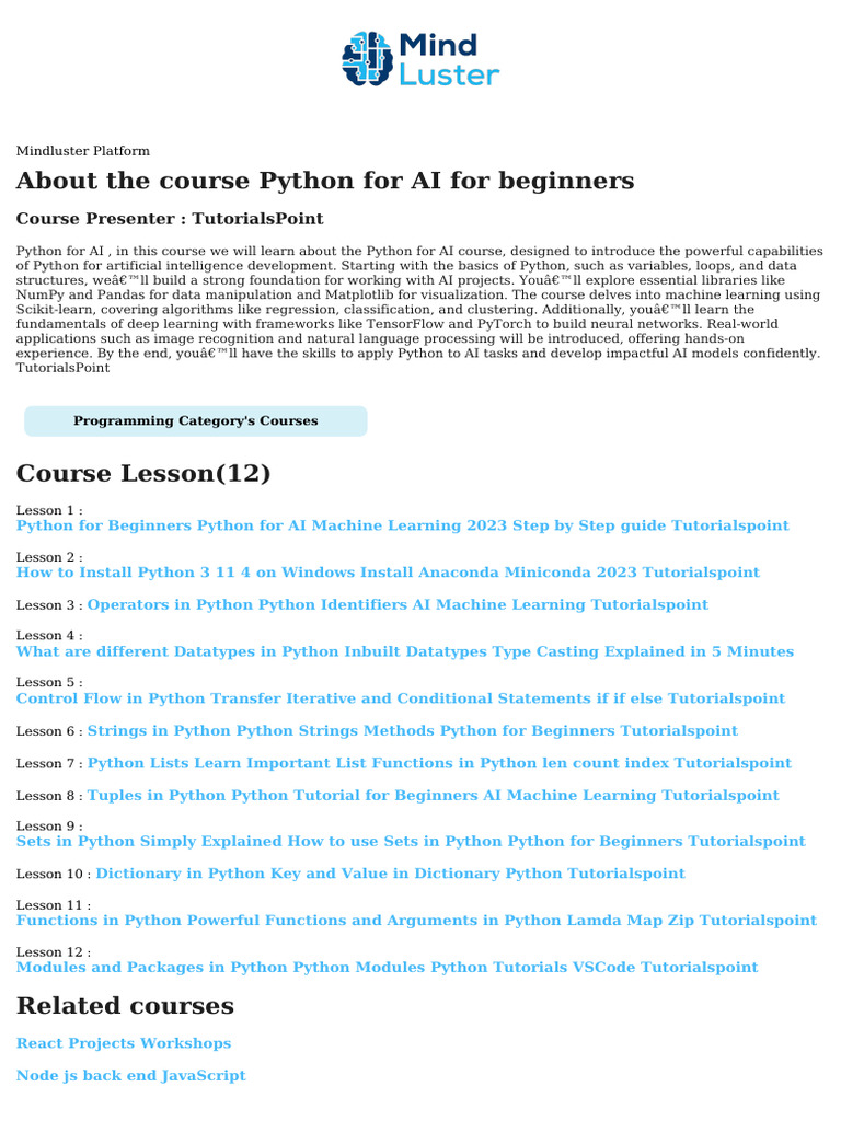 Python For AI For Beginners Course Content | PDF | Python (Programming ...
