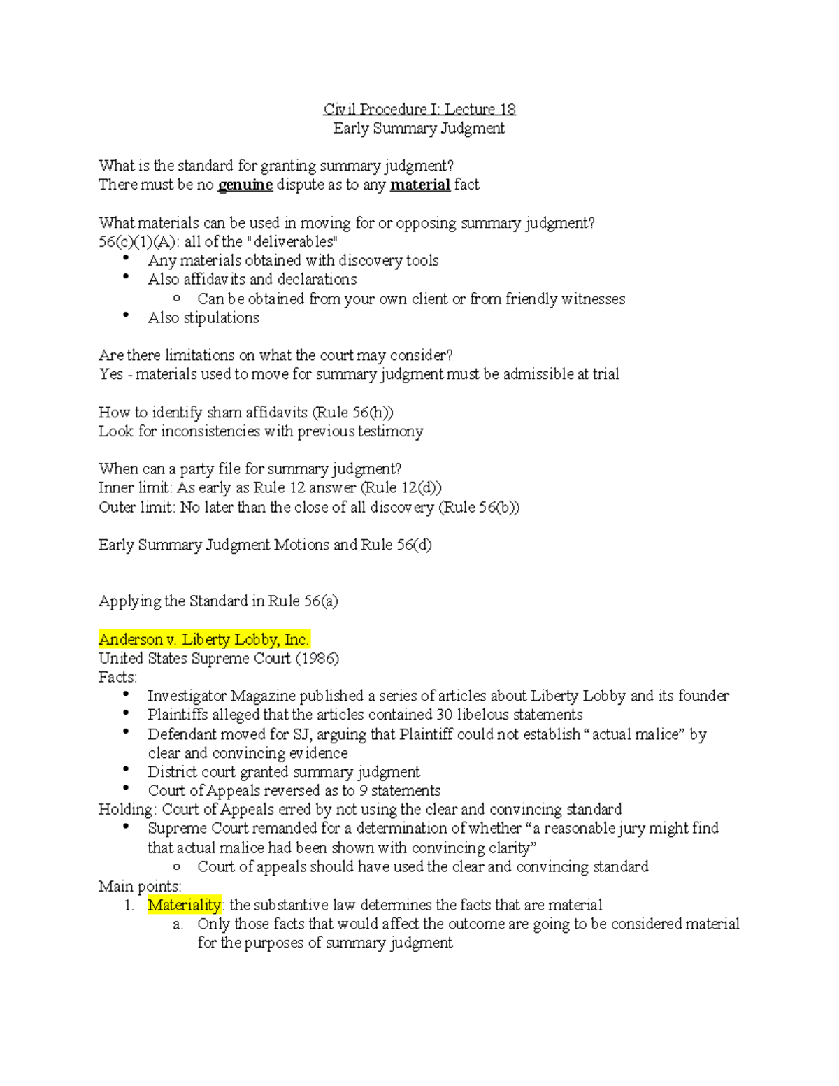 Civil Procedure I- Lecture 18 - Liberty Lobby, Inc. United States ...