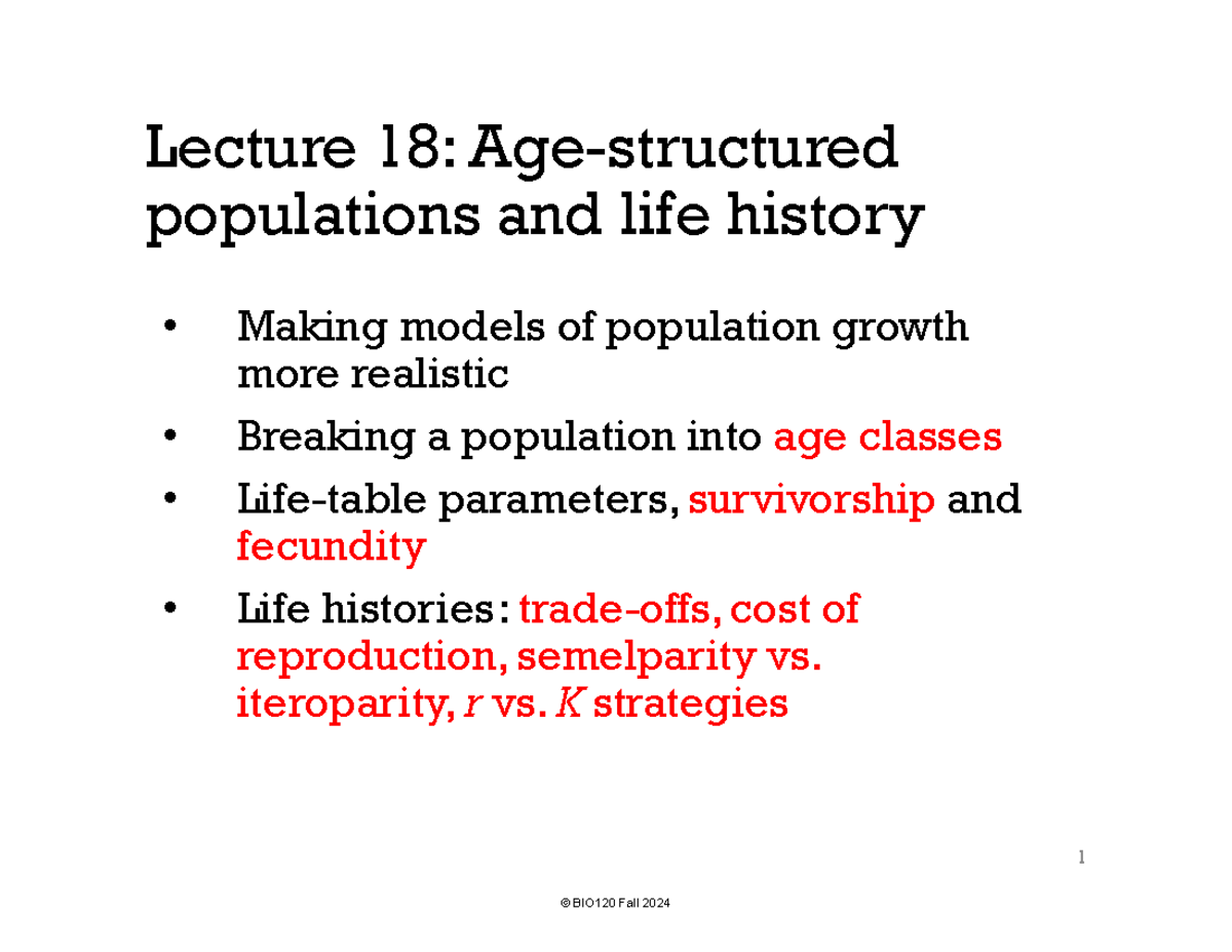 BIO120Fall2024 Lecture 18 1slideperpage - Lecture 18: Age ...