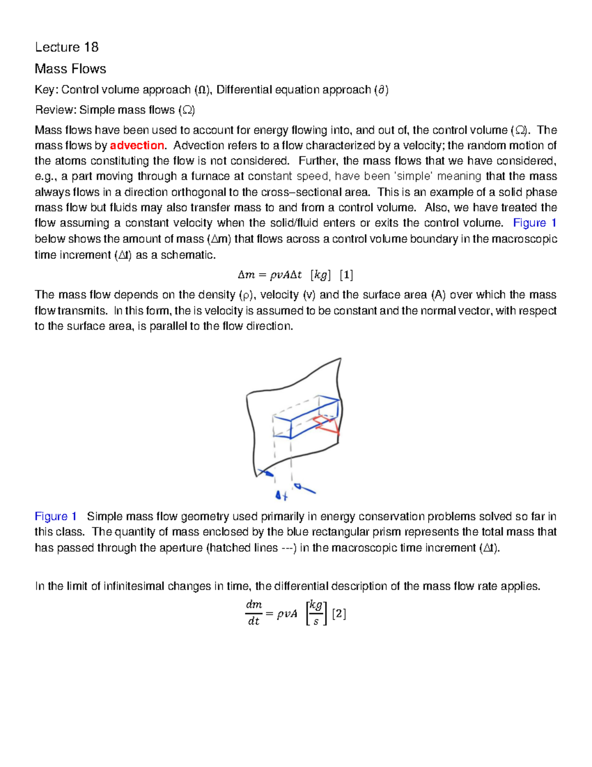 Lecture 18 (Notes) 2021 - Lecture 18 Mass Flows Key: Control volume ...