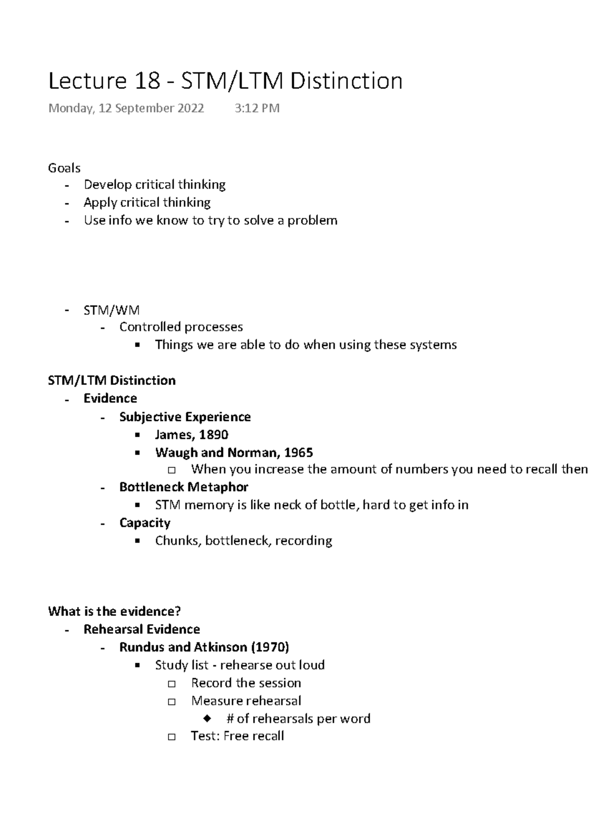 Lecture 18 - Stmltm Distinction - Goals - Develop critical thinking ...