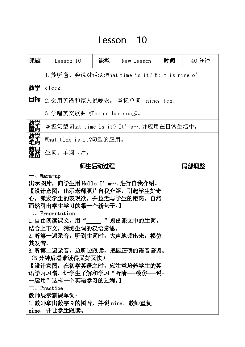 人教英语精通版三年级上册_unit2_lesson10_名师教案【天津河西】Word模板下载_编号qpoggepz_熊猫办公