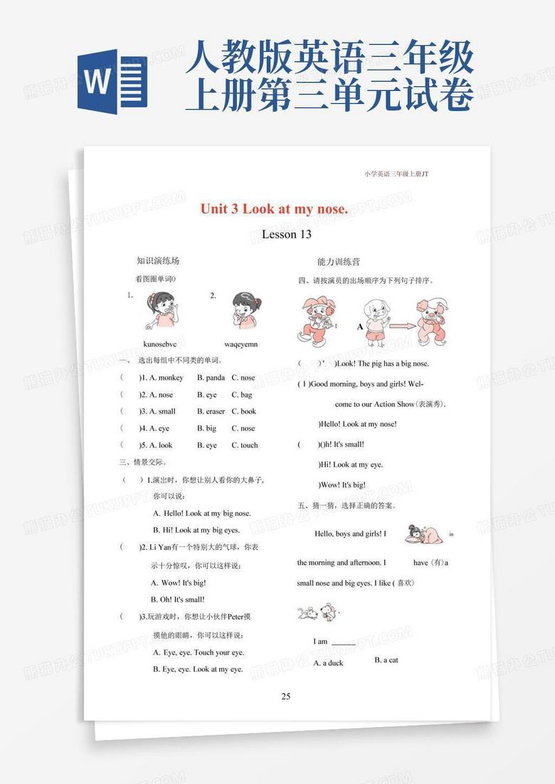 人教版精通版三年级英语上册《unit 3 look at my nose》课件_word文档在线阅读与下载_免费文档