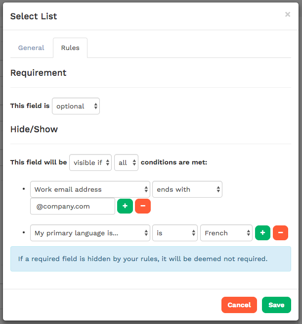 Conditional Logic for User Fields
