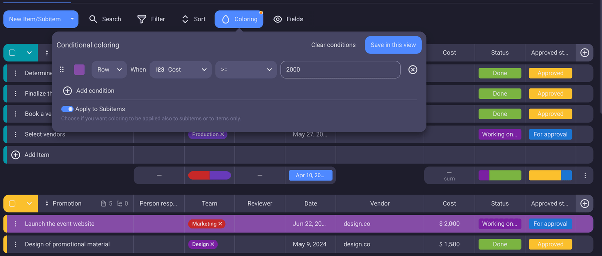 Conditional coloring in Microsoft Planner