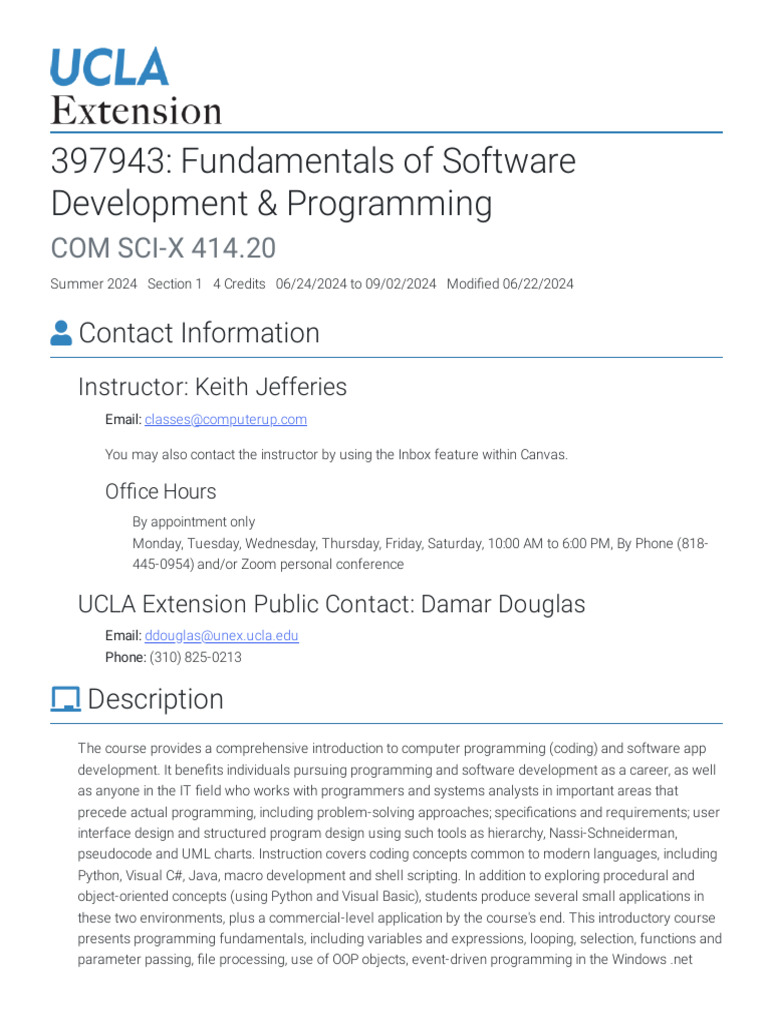 Fundamentals of Software Development Programming COM SCI X 414.20 ...