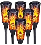 Toodour Solar Outdoor Lights, 6 Pack LED Flickering Flame Torch Lamps ...