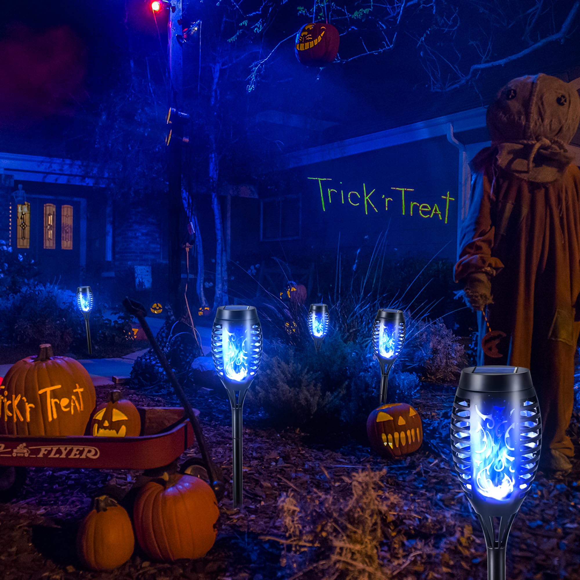 Toodour Solar Outdoor Torch Lights with Flickering Flame, Solar Pathway ...