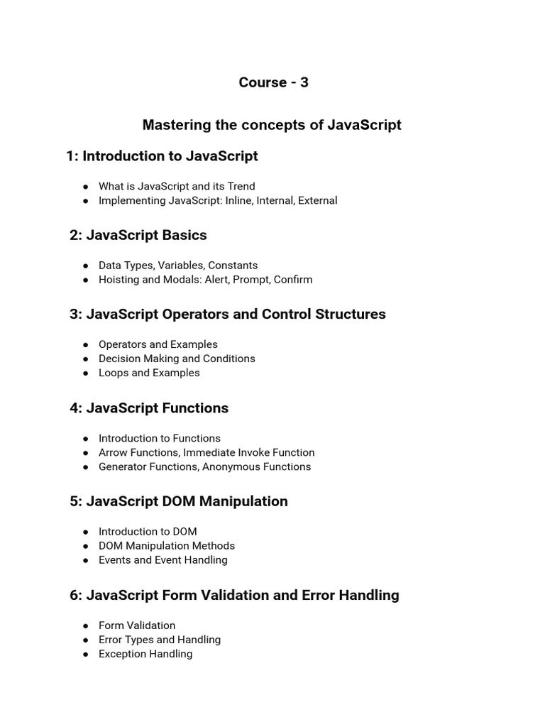 JavaScript Full Course Overview | PDF