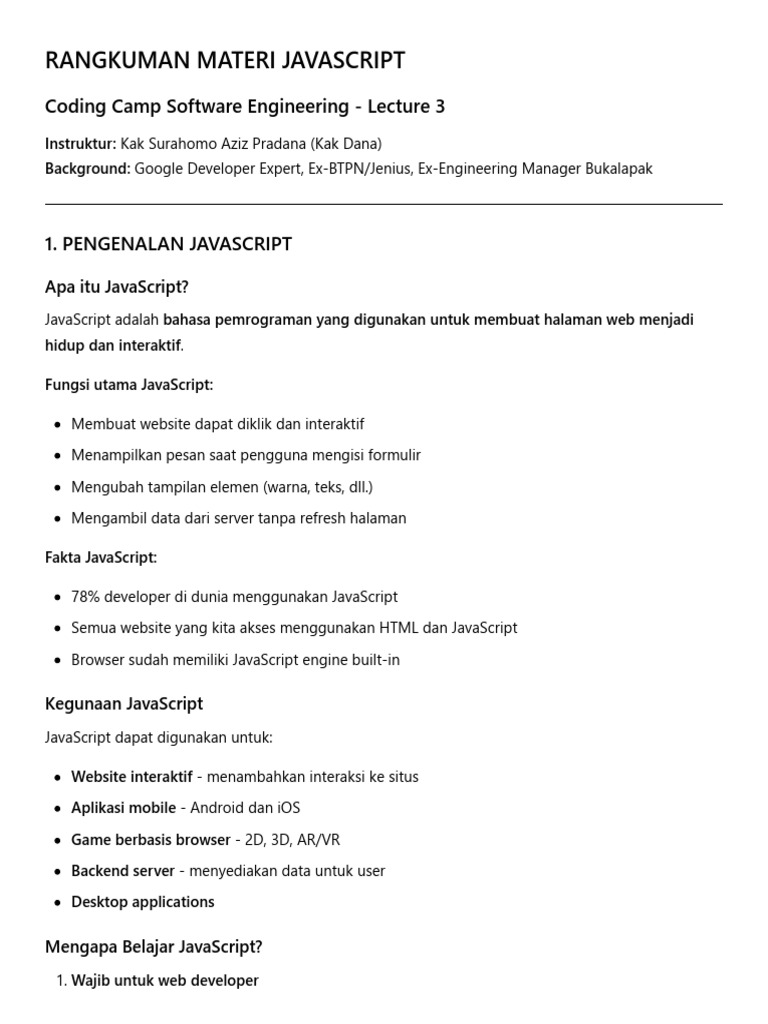 Rangkuman Materi JavaScript - Coding Camp Software Engineering | PDF