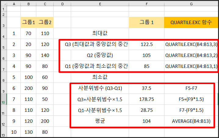 엑셀 상자 수염 그래프 :: 사분위수 계산 (Q1, Q2, Q3, 사분위범수) : 네이버 블로그