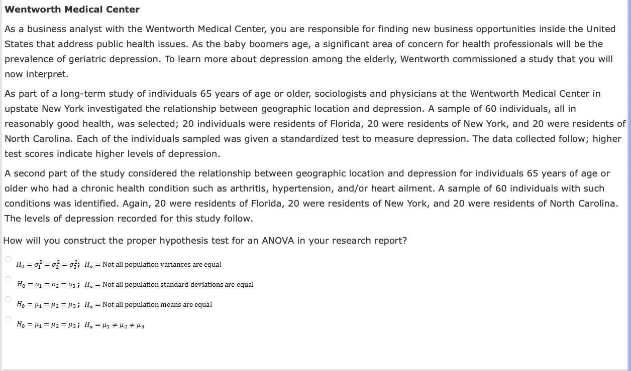 Solved Wentworth Medical Center As a business analyst with | Chegg.com