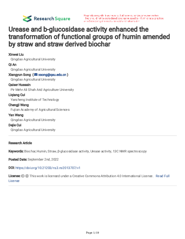 (PDF) Urease and β-glucosidase activity enhanced the transformation of ...
