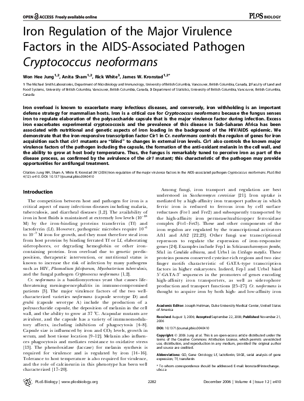 (PDF) Iron Regulation of the Major Virulence Factors in the AIDS ...