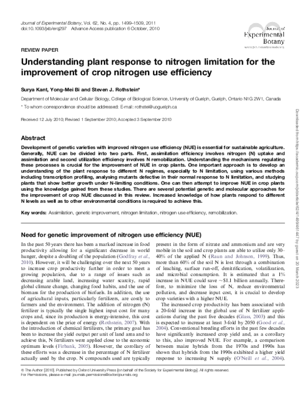 (PDF) Understanding plant response to nitrogen limitation for the ...